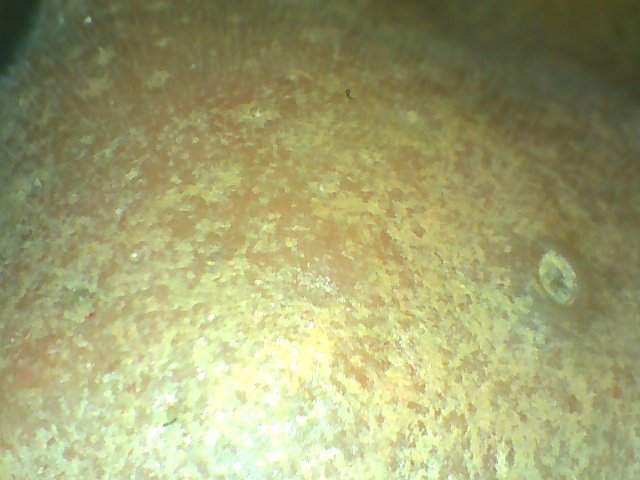 - **ลักษณะที่เห็น:** คล้ายกับแก้มซ้าย มีจุดด่างดำ อาจจะมีความมันเล็กน้อย