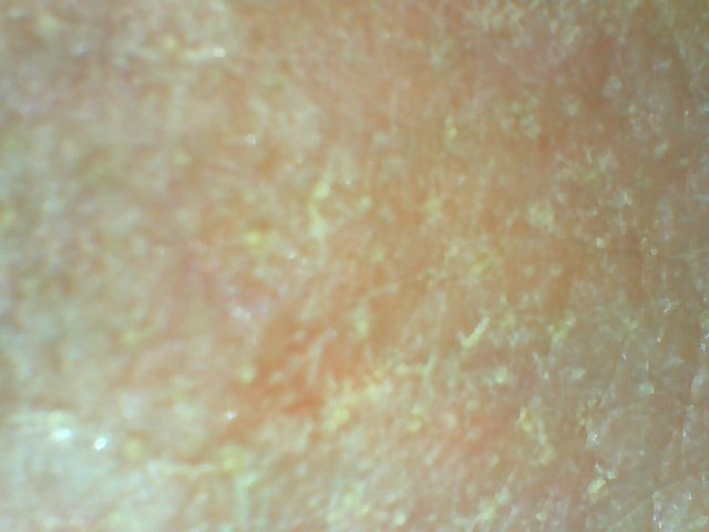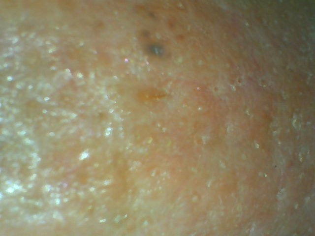 - **ลักษณะที่เห็น:** ดูมีสิวหรือตุ่มเล็กๆ ที่อาจจะเกิดจากความมันส่วนเกิน