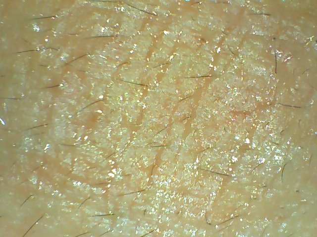 - **ลักษณะที่เห็น:** อาจมีสิวหรือการสะสมของน้ำมัน