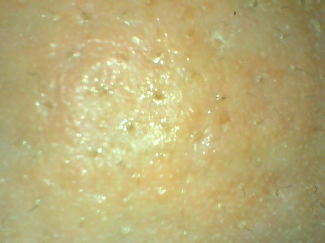 - **ลักษณะที่เห็น**: มีความมันและอาจมีสิวหรือสิวเสี้ยน