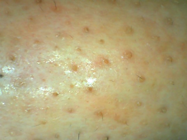 ผิวมีความสดใสเนื่องจากความชุ่มชื้นดี แต่ไม่ค่อยเห็นรูขุมขน กลับกันอาจแสดงถึงการขาดการผลัดเซลล์ผิว